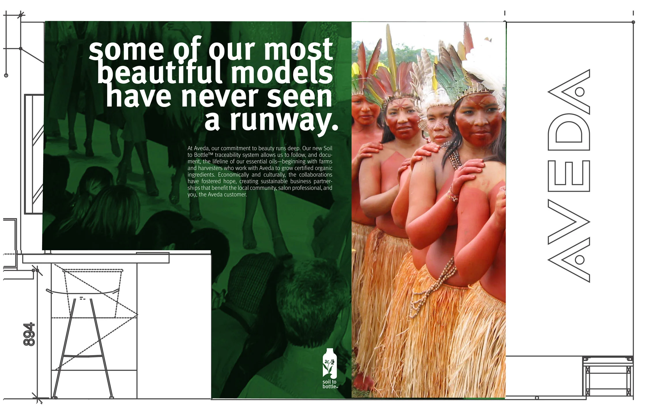 INTEGRATED CAMPAIGN, ENVIRONMENTAL DESIGN > Senior Copywriter/ Concept. Pioneer and powerhouse of the green beauty industry, Aveda UK opens in Selfridges, London. Always popular backstage with stylists and make-up artists, these wall murals speak to Aveda's rich environmental heritage—and its ties to the fashion world. Working in-house for Aveda as a Sr. Copywriter, I was called on to name products, create campaigns, collateral, in-store signage, as well as write packaging copy, ingredient stories, romance copy, magazine copy, web copy, radio scripts, and score free stuff when lucky.